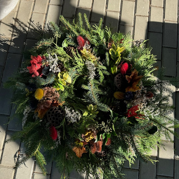 Dušičkovou vazbu, máme ve volném prodeji každoročně zhruba od poloviny října, v široké nabídce. Najdete u nás vázané nebo vypichované věnce a věnečky různých průměrů, lesní a květové kytice, žardinky s přírodním nebo exotickým zdobením nebo lesní koše. Jedná o ručně vyráběné produkty, které jsou tvořeny z aktuálně dostupných materiálů a výsledek se proto může lišit od fotografií.